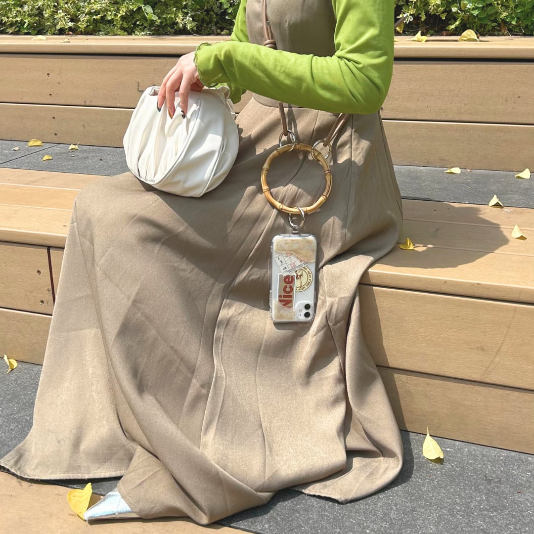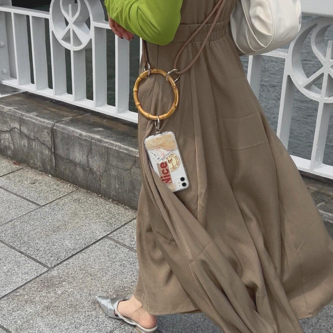 シンプルなコーデにもさりげなく映える、大人のためのスマホショルダーです。