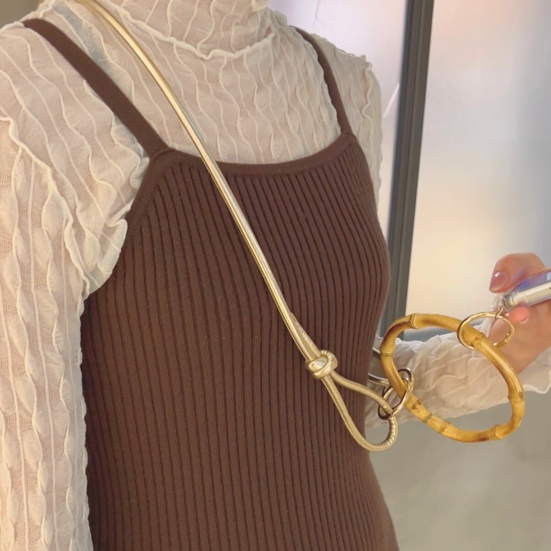 シンプルなコーデにもさりげなく映える、大人のためのスマホショルダーです。
