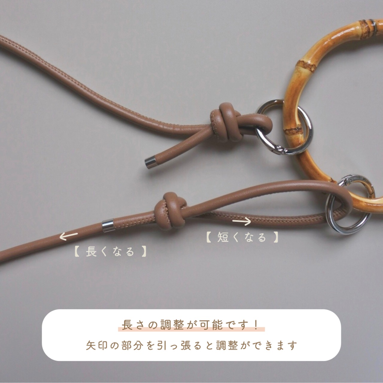 長さ調節ができるから、体型やコーデに合わせてぴったりフィット。