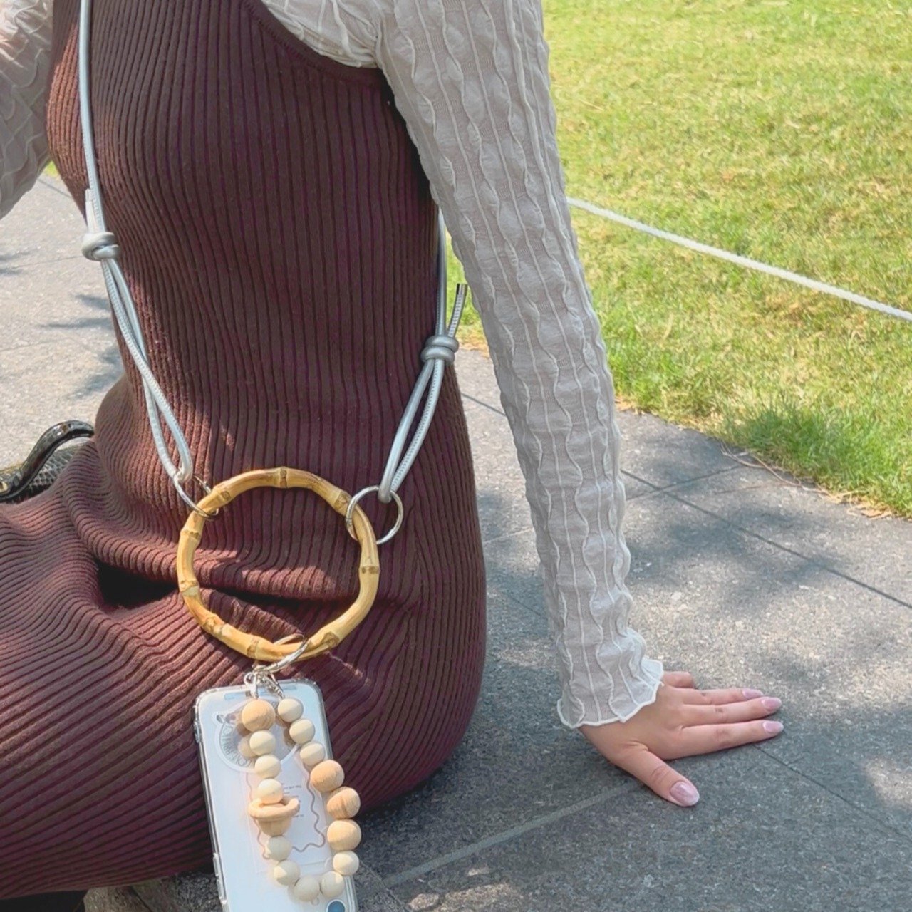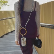 シンプルなコーデにもさりげなく映える、大人のためのスマホショルダーです。